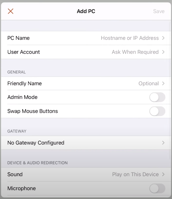 오른쪽 상단의 + 를 눌러 Add PC를 클릭하시면 다음처럼 나타납니다.