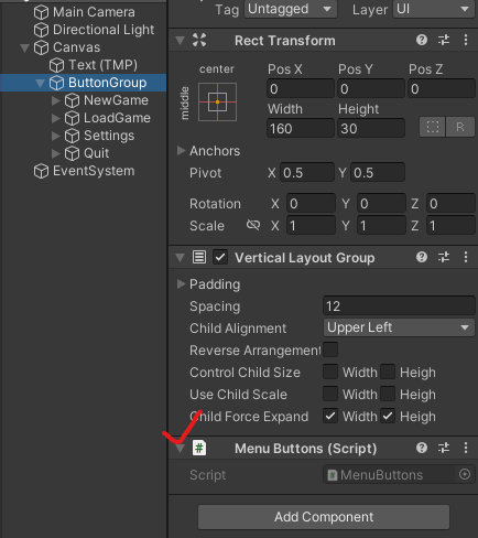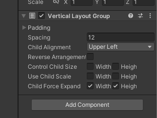 그리고 ButtonGroup에 Vertical Layout Group를 추가합니다.