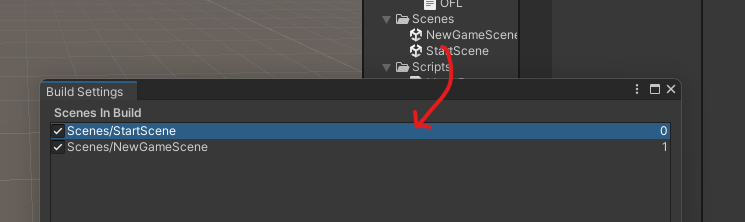 드래그를 해서 넣으시면 되는데 오른쪽을 봤을 때, 0,1을 잘 기억해주셔야 합니다. 저 번호를 기준으로 씬을 이동하게 하려합니다.
